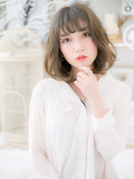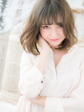 Aラインシルエット&前下がりのくせ毛風ふわミディは、透け感ある斜めバングや厚めバングで軽やかな抜け感を出して。耳かけでガーリーにしたり、ラフなかきあげでsexyに決めてもOK。(メイク担当:川口店 成田)