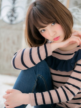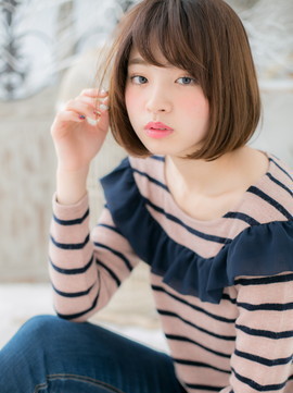 好感ナチュラルボブ。斜めバングで目力UP,前下がりで輪郭カバーして小顔効果♪くせ毛風カールのフェミニンボブやふわミディ、大人ボブもトレンド。(bliss北浦和店アシスタント棟方の撮影スタイルです。メイク担当:棟方)