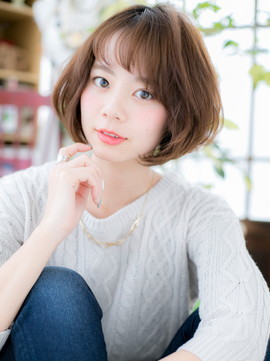 ナチュラルボブからのイメチェンにオススメ。ひし形フォルムで小顔に見せた前下がりのフェミニンボブ。グラマラスな大人ボブは、斜めバングや厚めバングで目力UPして美人顔に格上げ◎(メイク担当:川口店 成田)