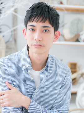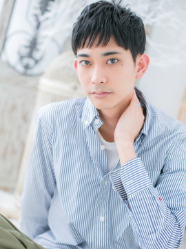 好感度の高い爽やかな黒髪マッシュショート。前髪と束感で優し気なジェントルマンstyleに。サイドパートやセミウェットなツヤ感仕上げもセクシー。(bliss北浦和店アシスタント棟方の撮影スタイルです。メイク担当:棟方)