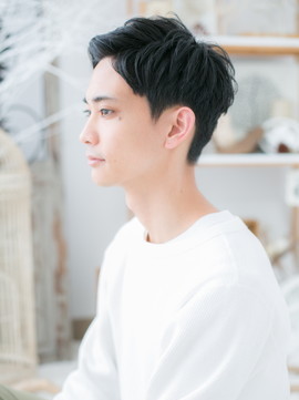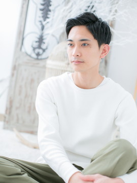 ビジネスシーンでも使える好感度大の黒髪ウェットショート。七三で旬顔にしたり、アップバングやオールバックもカッコイイ。刈り上げやツーブロックでスッキリさせて爽やかに決めて。(メイク担当:北浦和店 棟方)