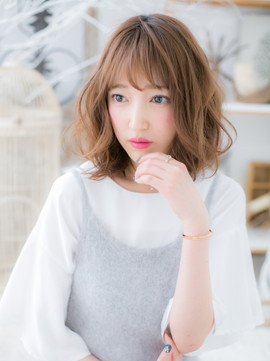 やわらかな空気感を醸す大人かわいいふわミディ。斜めバングで目力UP。厚めバングやオン眉も個性的。くせ毛風カールや耳かけで抜け感を出しても◎(ブリス北浦和店アシスタント棟方の撮影スタイルです。メイク担当:棟方)
