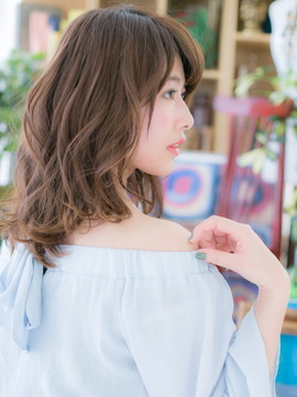 くせ毛風のやわらかカールが大人かわいい印象のふわミディ。斜めバングでフェミニンにしたり、厚めバングやオン眉で個性的にしてもGOOD。ナチュラルボブやフェミニンボブ、大人ボブや前下がりボブからの伸ばしかけに◎