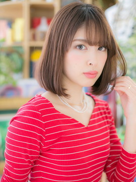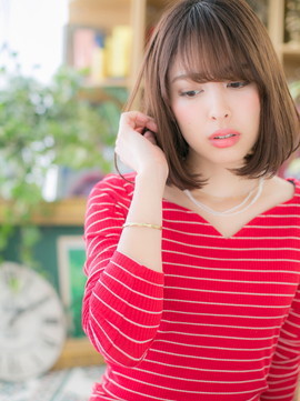 シンプルなナチュラルボブはツヤと透明感が大事!トリートメントで保湿を心がけて♪斜めバングでフェミニンにしたり、厚めバングやオン眉も個性的ガーリー。くせ毛風のふわミディも旬顔☆(メイク担当:川口店 成田)