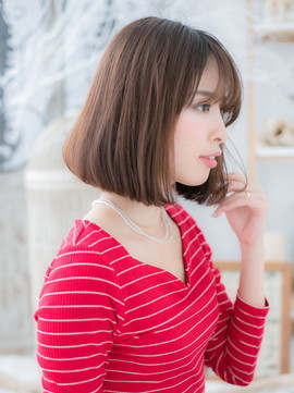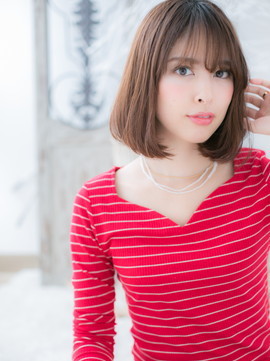 シンプルなナチュラルボブはツヤと透明感が大事!トリートメントで保湿を心がけて♪斜めバングでフェミニンにしたり、厚めバングやオン眉も個性的ガーリー。くせ毛風のふわミディも旬顔☆(メイク担当:川口店 成田)