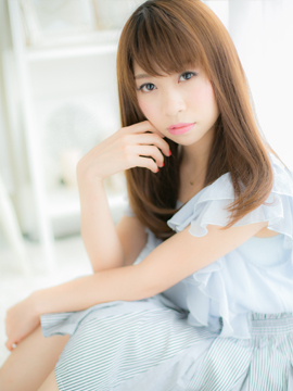 育ちのいいお嬢様風の上品なワンカールストレート。彼ママや上司ウケも抜群の王道モテスタイルです。ツヤカラーをオンすることで大人っぽさが加わり、甘過ぎない女子力UPスタイル。目の上ギリギリのバングは目力効果大!上目遣いの甘え顔が似合います♪