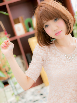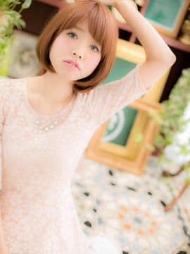 女の子らしい可愛いピュアなナチュラルボブ。明るいカラーでハッピーなスウィートヘアに。ネコっ毛や直毛の方は毛先にパーマをかけると内巻きも楽々☆