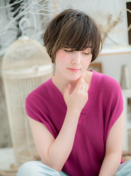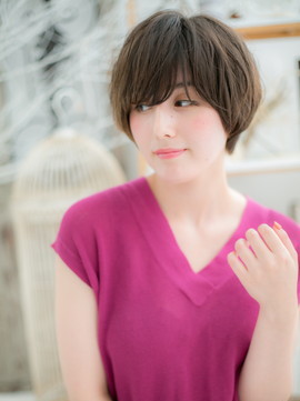 トップにボリュームを持たせスタイルアップ効果を。目の上ギリギリの斜めバングや厚めバングで目元を印象つけます。耳かけや前下がりでアシンメトリーに仕上げてクール&スタイリッシュに!(メイク担当:北浦和店 近藤)
