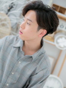 ワイルド立ち上げたアップバングが印象的。七三&サイドの刈り上げのツーブロックで、イマドキスタイルにカッコよく。マットに仕上げて優しいジェントルマンな雰囲気にしたり、無造作ショートでラフに崩すのもトレンド。