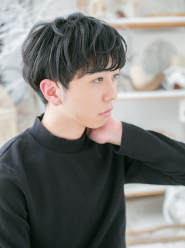 好感度間違いなしの黒髪マッシュ。今風にしたいなら、マットな質感でニュアンス感ある動きを出すのがオススメ。ふんわりトップを立ち上げればスタイルアップ効果も。刈り上げで毛量調整してツーブロックに仕上げても◎