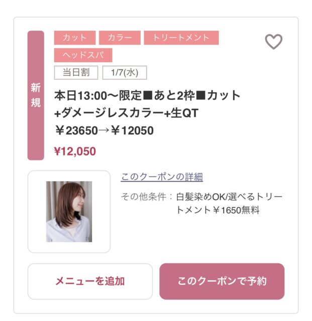 - ★1月キャンペーン★全22種お悩み別トリートメントALL¥1650 OFFキャンペーン♪【上尾】