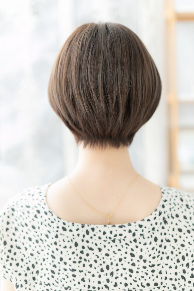 大人かわいいくすみカラー前下がりショート