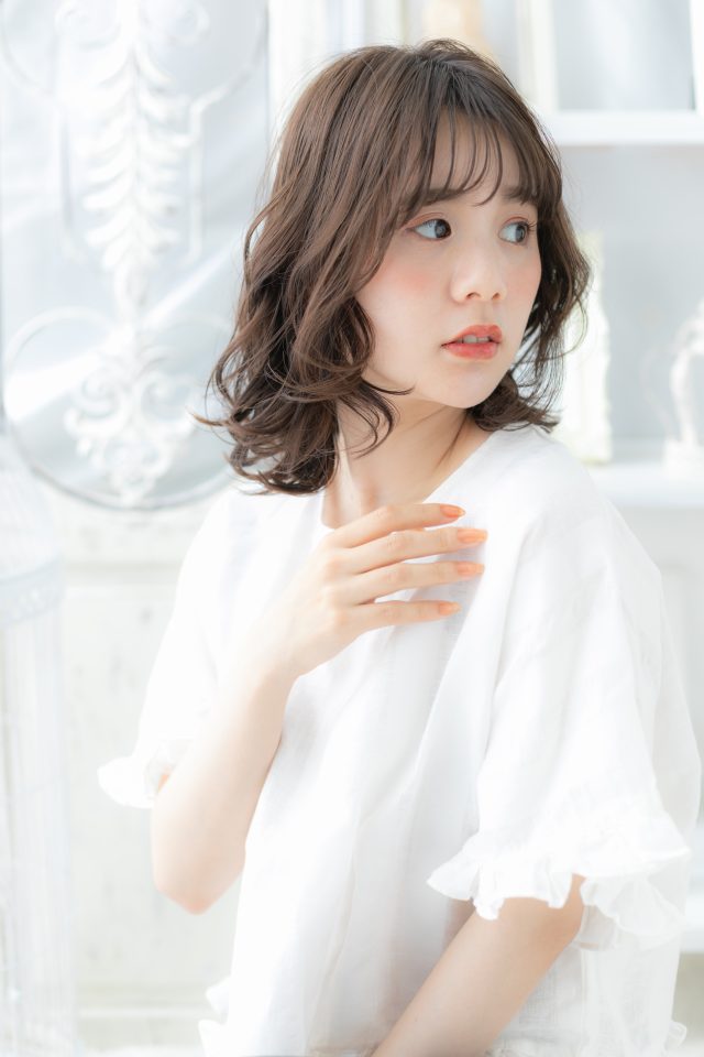 斜めバングや厚めバングで目力UP。前下がりで小顔。ナチュラルボブやフェミニンボブ、大人ボブや前下がりボブからの伸ばしかけに◎くせ毛風ふわミディや耳かけも大人かわいい。(メイク担当:COVERHAIRGROUP中田)