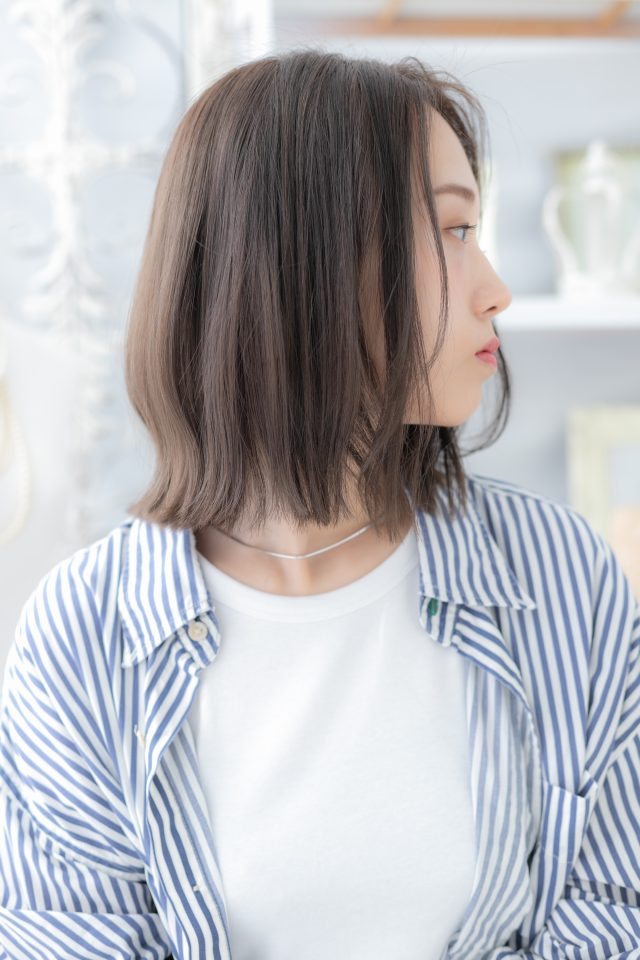 インナーカラー/バレイヤージュ/ハイトーンカラー/切りっぱなしボブ/シースルーバング/大人ハイライト/韓国風/透明感/ボブ/ウェットヘア/マッシュボブ/イヤリングカラー/エアリーミディ/ナチュラル/オーガニックカラーは白髪にも対応可/20代/30代/40代