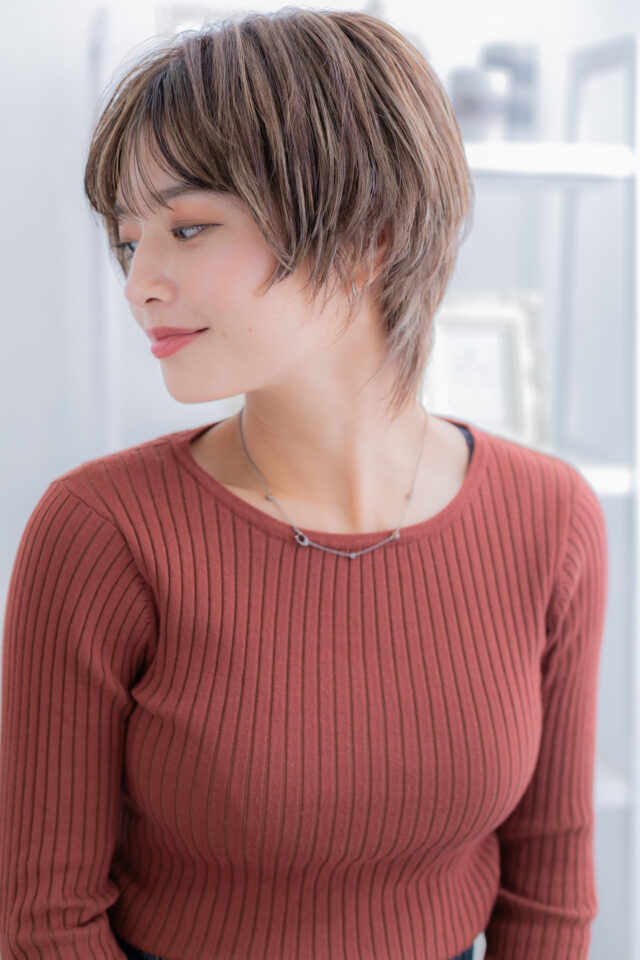 - バレイヤージュ/ハイトーンカラー/切りっぱなしボブ/ナチュラルボブ/大人ボブ/前下がりボブ/ウェットヘア/ウルフ/ナチュラルマッシュショート/ショートマッシュ/丸みショート/くびれショート/耳かけ/ナチュラル/20代/30代/40代