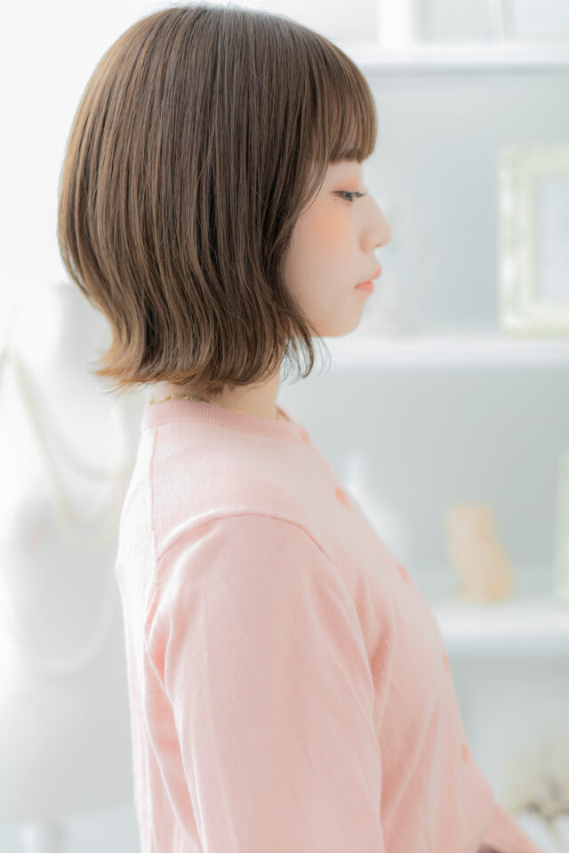 大人ガーリー前下がりくすみカラー外ハネボブ