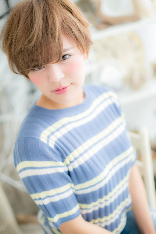 トップの長さがあるので、程よく女の子っぽさも残したボーイッシュなショートスタイルです。透明感あるハイトーンカラーが外国人ぽいような雰囲気も演出します☆