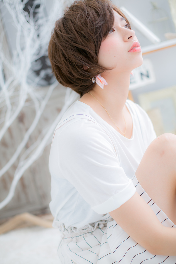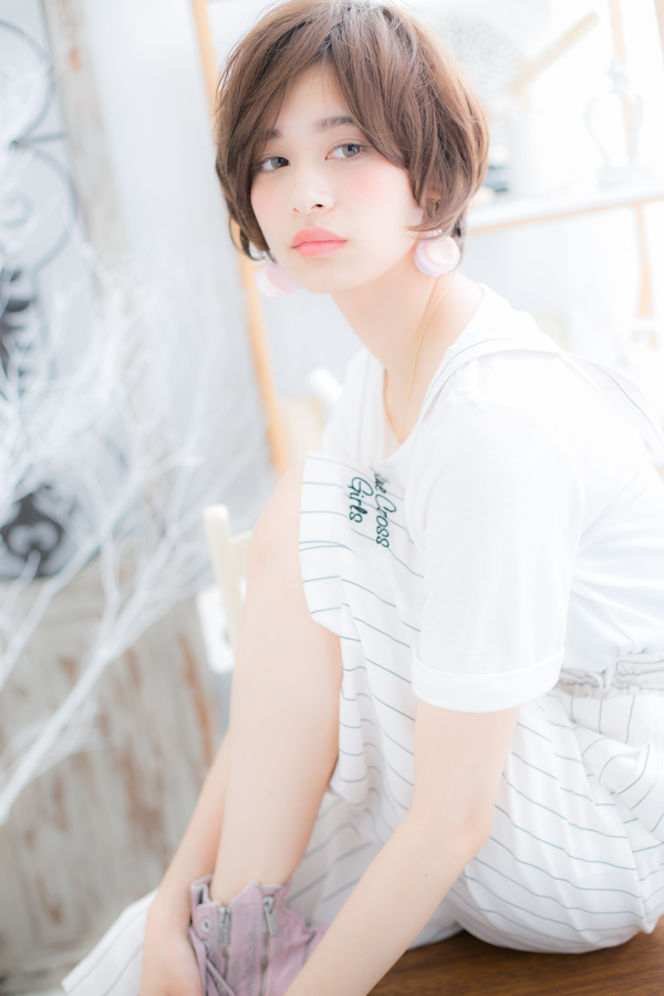 • 外国人風ピンクブラウンくせ毛風ボブショート