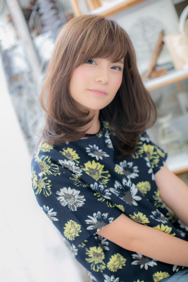 大きめなワンカールで動きがあるセミディレイヤーです。毛先に大きめのワンカールをつけることでやわらかさUP。ベージュ系カラーで透明感もUPします。