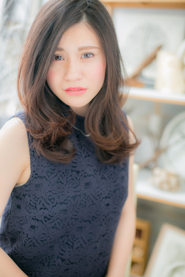 大きめのやわらかいワンカールは、黒髪でも重たく見えないポイントです。ツヤのあるストレートとちょっとした毛先の動きで、オフィシャルな場面もオシャレに!!