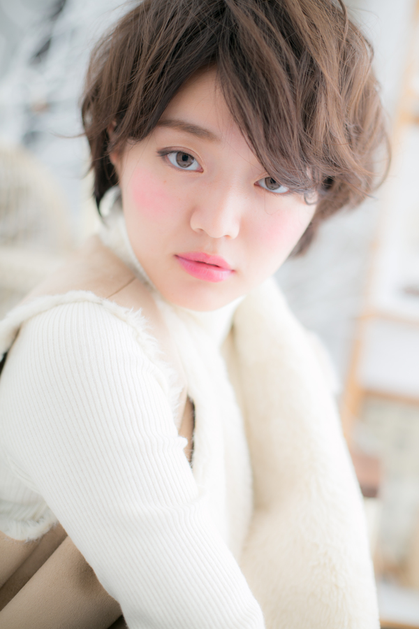 ボーイッシュになりがちなマッシュショートも、トップからのふんわりとしたエアリーカールでやわらかで女性らしい印象に。ストレートショートに飽きた方にも☆