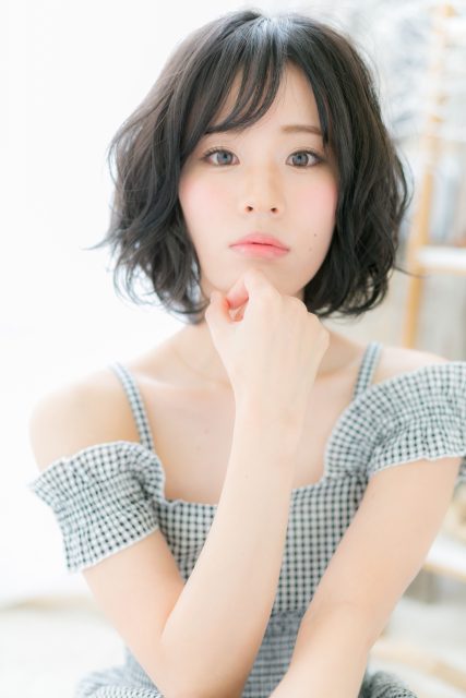 扱いやすいニュアンスパーマがかかっているので、ボリューム感も簡単に出せます。甘さも出せるサイドパートが好感度もUP!!