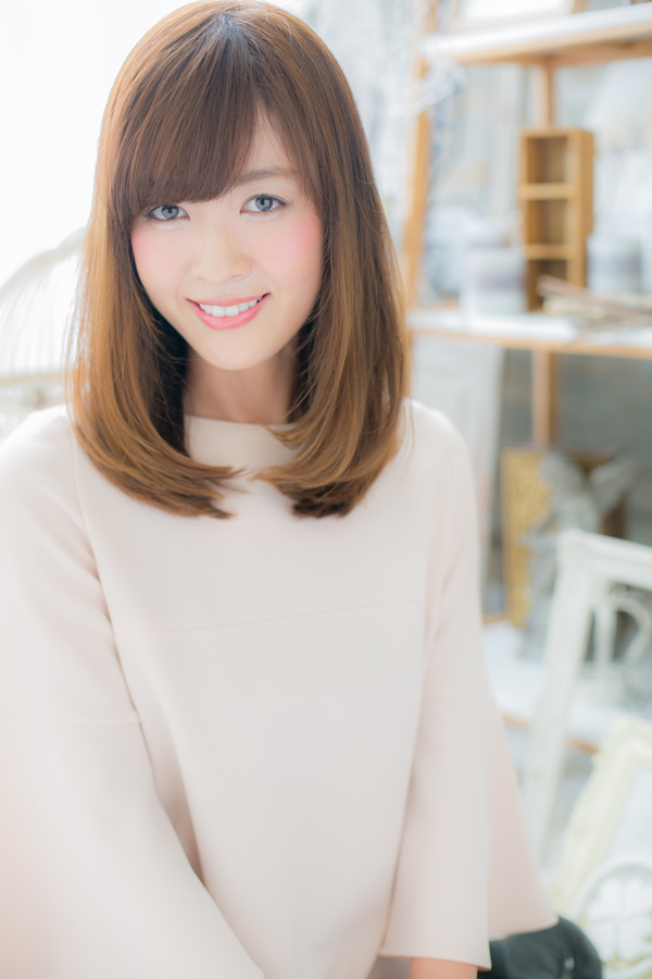風になびくような、シンプルな内巻きストレートです。厚めバングやフリンジバングで小顔効果もUPさせて、ツヤツヤサラサラなセミディスタイルをキープ♪