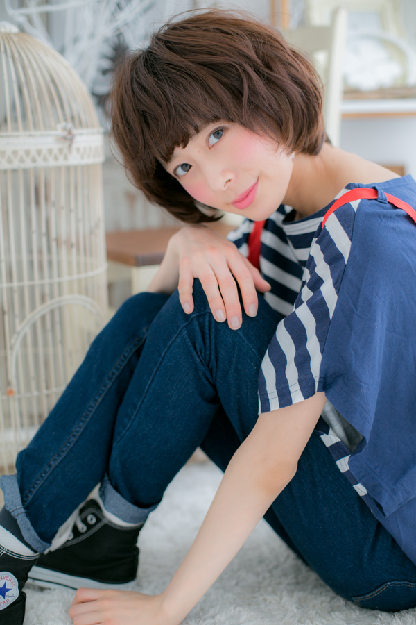 ノームコアなナチュラルボブにくせ毛風のエアリーカールをオン。自然なゆるウェーブのベビーショートで、フェミニンでやわらかな雰囲気に。厚めバングと合わせて目元の印象UP!顔の面積を小さくしてキュートな小顔に見せます。(メイク担当:COVER HAIR GROUP 棟方)