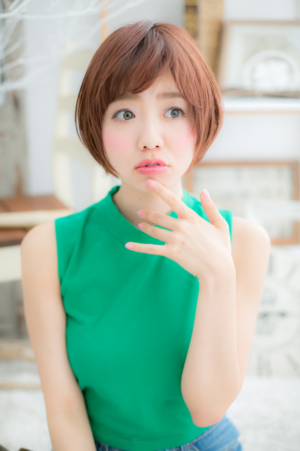 ナチュラルな前下がりボブはサイドの毛流れで小顔対策◎ノームコアスタイルはカラーでスポンテニアスに遊んで。ピンクベージュやオレンジベージュ、ミルクティカラーで明るく見せて!(メイク担当:COVER HAIR GROUP 成田)