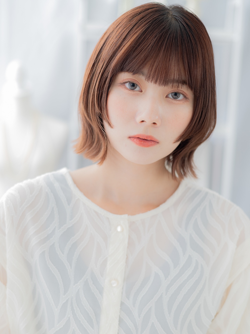 カットだけでOKなナチュラルスタイル。明るめなアッシュ系にすることで、重めのボブも軽く動きが出やすくなっています。クセがある方はナチュラルストレートでツヤツヤに。