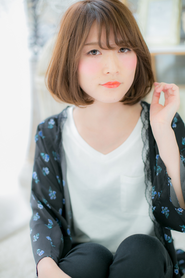 ワンカールのナチュラルボブ。ボブベースでカットしてトップにレイヤーを入れることで動きがUP。ベージュカラーが◎フェミニンボブや前下がりボブ、大人ボブへのイメチェンも◎(メイク担当:COVER HAIR GROUP 成田)