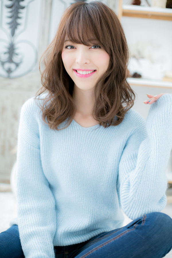 透け感ある斜めバング&くせ毛風カールで色っぽかわいい印象のふわミディのヘアスタイルです。ナチュラルな抜け感スタイルは好感度バッチリで大人女子のファション度UP☆厚めバングや耳かけで大人かわいい雰囲気にヘアアレンジもOK。似合わせカット&前下がりで小顔もGOOD!