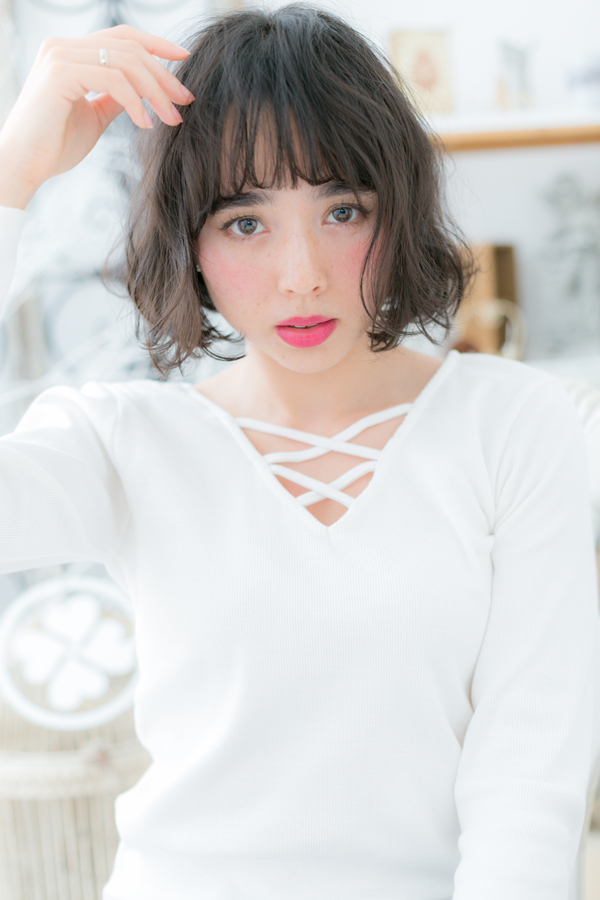 前下がりで小顔にメイクしているので、ボブ初挑戦の方にもオススメ。斜めバングや厚めバングで目力UPしたり、無造作質感の切りっぱなしボブもラブカジュアル。耳かけも大人かわいい。パーマで簡単スタイリングが嬉しい。ヒアルロン酸カラーは白髪にも対応可。