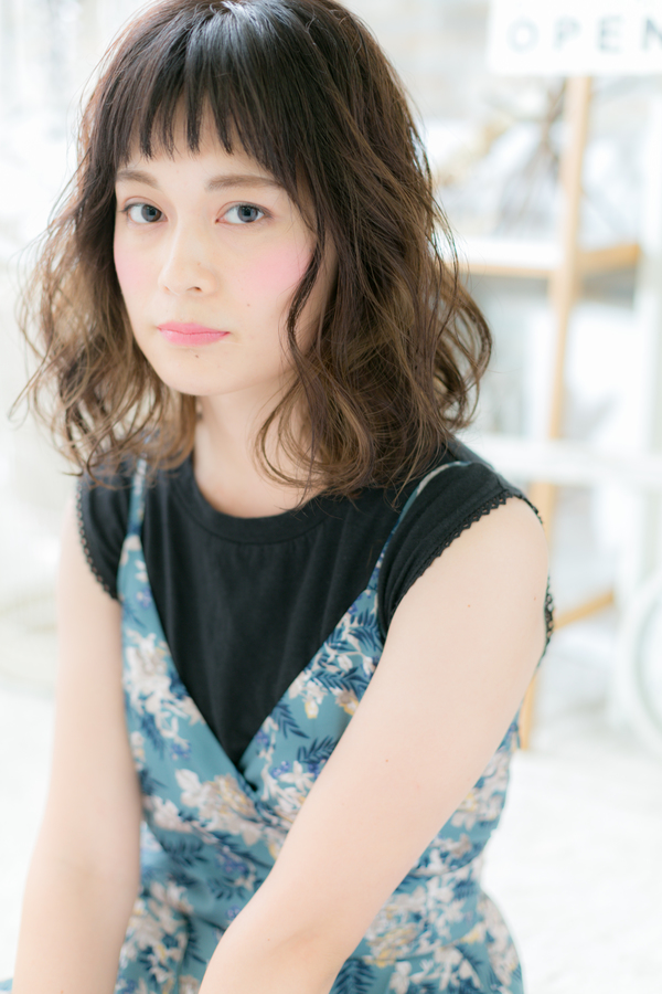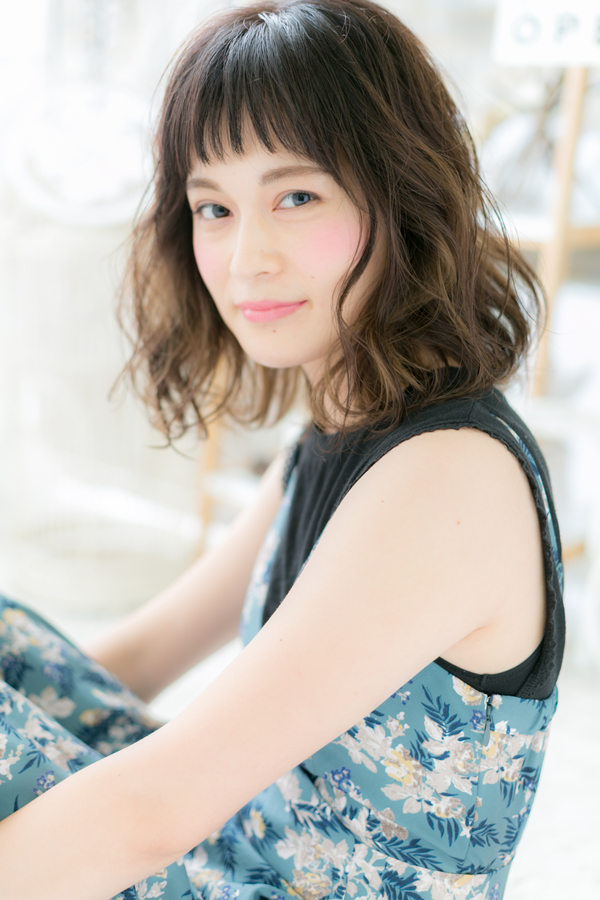 ラブグラマラスなふわミディのヘアスタイル。短めシースルーバングで大人かわいい雰囲気。ナチュラルボブや前下がりボブ、フェミニンボブや大人ボブからの伸ばしかけにオススメ。耳かけや前下がりででスッキリさせても◎