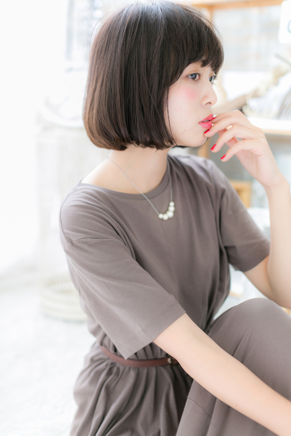 顔周りをやわらかく前髪と繋いだことで、サイドシルエットがスッキリ見えるようにカットで大人女子のコーデを完成。首の長さやアゴのラインに合わせた似合わせカットで、どんな顔型の方でもしっかりマッチするボブのヘアスタイルに◎トリートメントしたようなカラーリングで髪の毛の悩みも解決!30代・40代にもおすすめ!(メイク担当:上尾店 中田)
