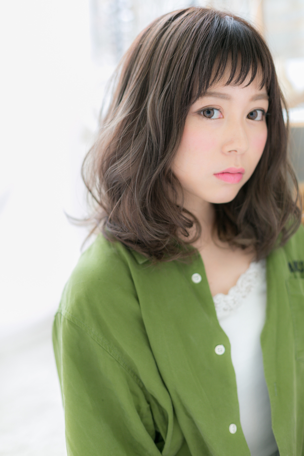 くせ毛風パーマでニュアンス感ある動きを出した抜け感ふわミディのヘアスタイル。個性的なオン眉で隙を作って、カジュアルガーリーな雰囲気に。モード風、耳かけや前下がりも小顔に見えて大人女子のファッション度UP。髪の毛の色は暗めのグラデーションやアッシュグレー、ブリーチなしも◎30代・40代にもおすすめ!(メイク担当:川口店 成田)