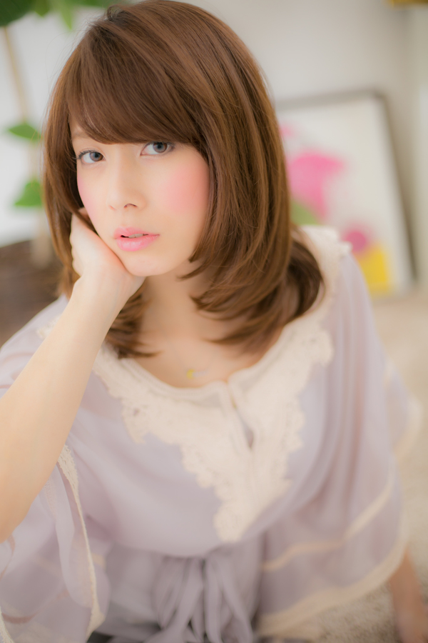 上品さと可愛さが絶妙なセミディ。ひし形フォルムとサイドのレイヤーで重めスタイルも重軽な文句なしの女性らしいスタイル!透け感たっぷりカラーもポイントです。トリートメントでよりグラマラス感もUP!!斜めバングやセンターパート,かきあげバングにも☆