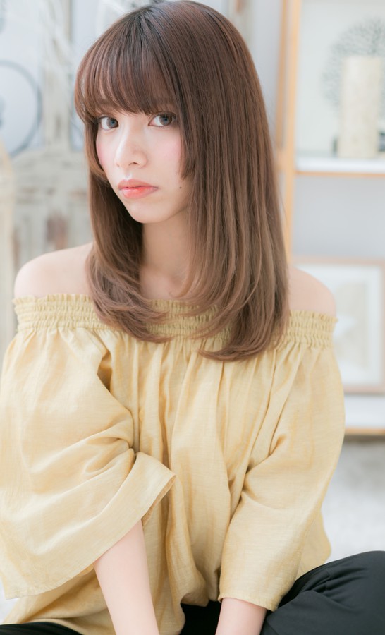 しっとりまとまるワンカールストレート。厚めバングで目力強調し、ツヤ感あるベージュカラーで顔周りを明るし、大人女子のコーデを完成。好感度大の美人顔ロングはオフィスでもデートでもウケバッチリ♪トリートメントしたようなカラーリングで髪の毛の悩みも解決!人気のカラーやグラデーション、ベージュもおすすめ!30代・40代にも◎