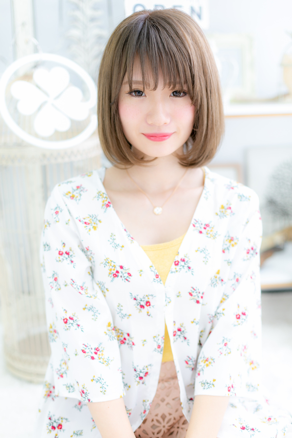 外国人風カラーのツヤ感前下がりボブディ