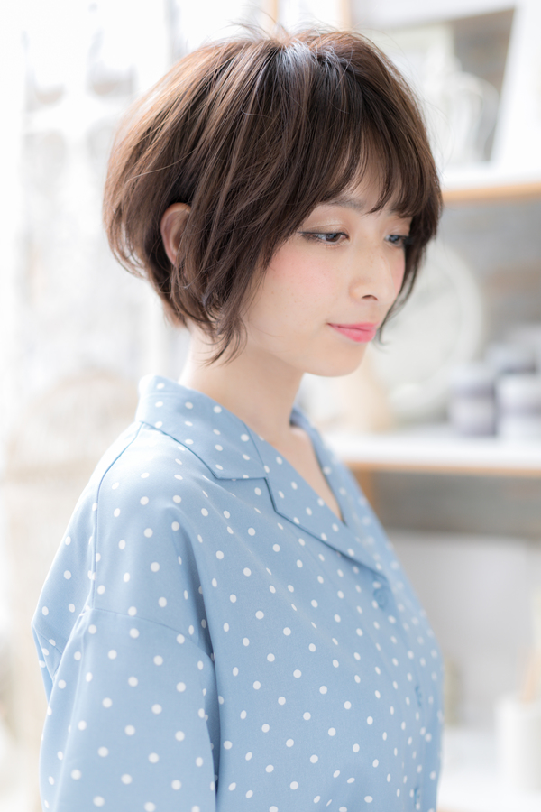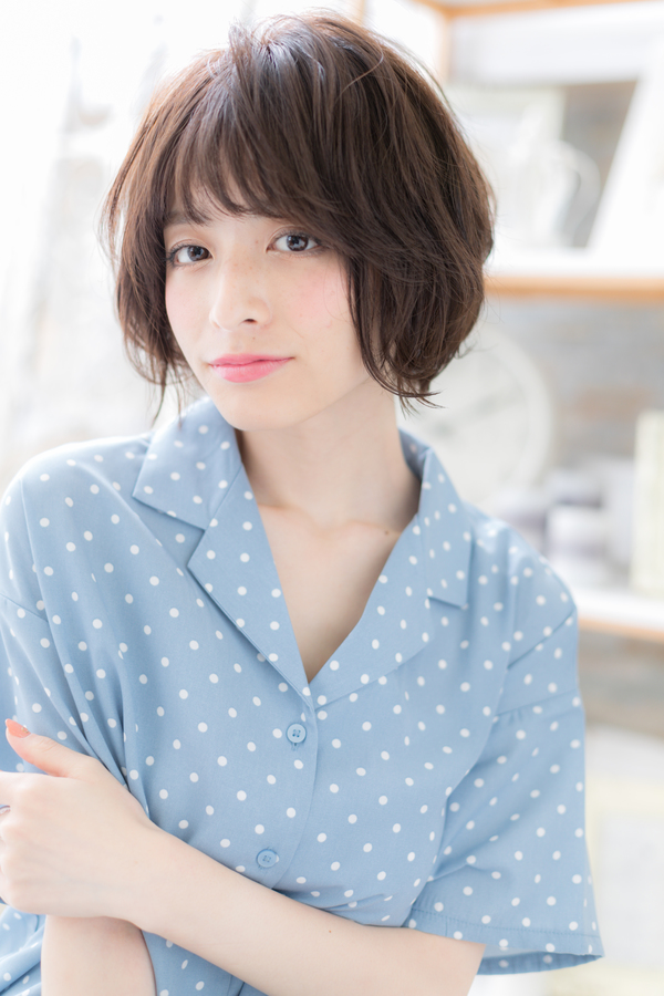 大人フェミニン…前下がりくせ毛風ショート