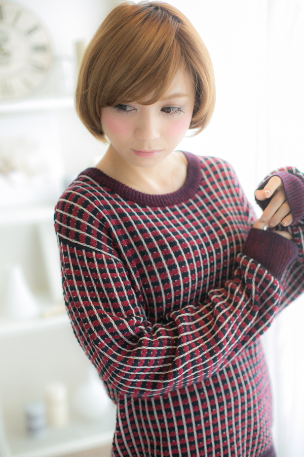 • 外国人風ピンクブラウンくせ毛風ボブショート
