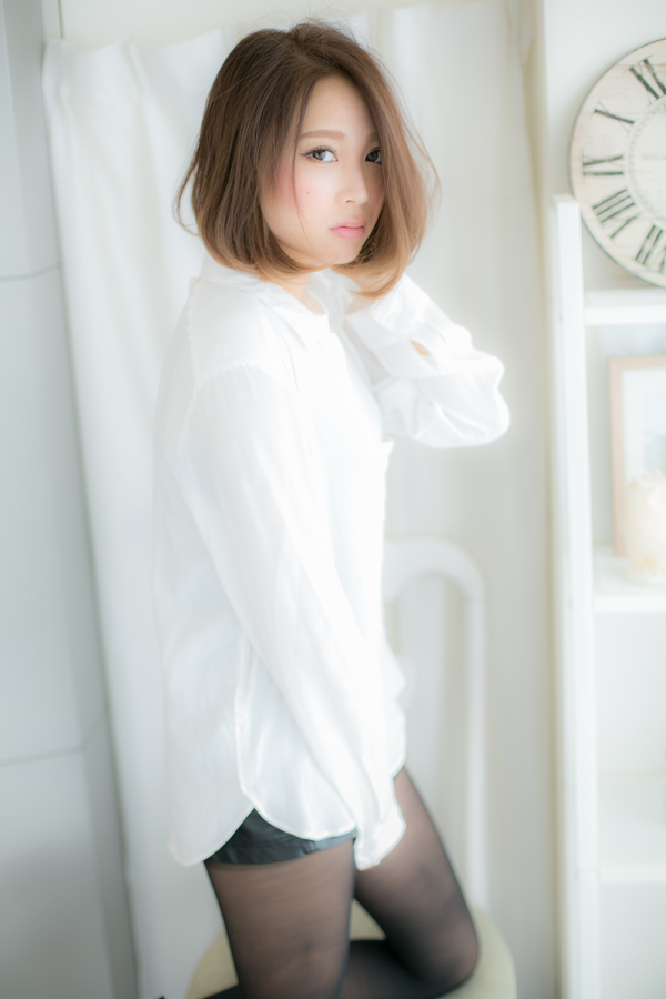 根元はふんわりとざっと乾かして。これからの季節は、洗い流さないトリートメントで潤いとキラめくツヤ感をキープして!ダメージにはメルティカラーがオススメ。グラマラスな大人かわいいフェミニンボブには,カールをつけると◎モードやクラシカルにも。