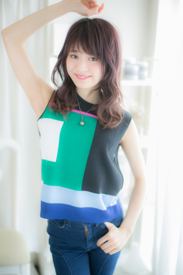 脱甘ヘアを目指す女性にピッタリの、大人カッコイイスタイル。しだれ落ちるウェーブに、メリハリあるレッド系のカラーを。目の上ギリギリの斜めバングで目力を強調して!ルーズで無造作なニュアンスロングにツヤカラーで、大人の女性のこなれ感が漂います。