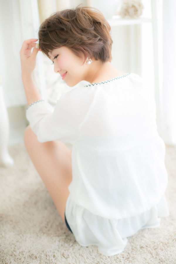 ラウンドバングとマッシュベースに動きをつけたパーマがガーリーなエアリーショート。ハイライトやハイトーン・ダブルカラーで、立体感あるおしゃれ度UPなスタイル。フェミニンボブや大人ボブにされたい方もご相談ください☆