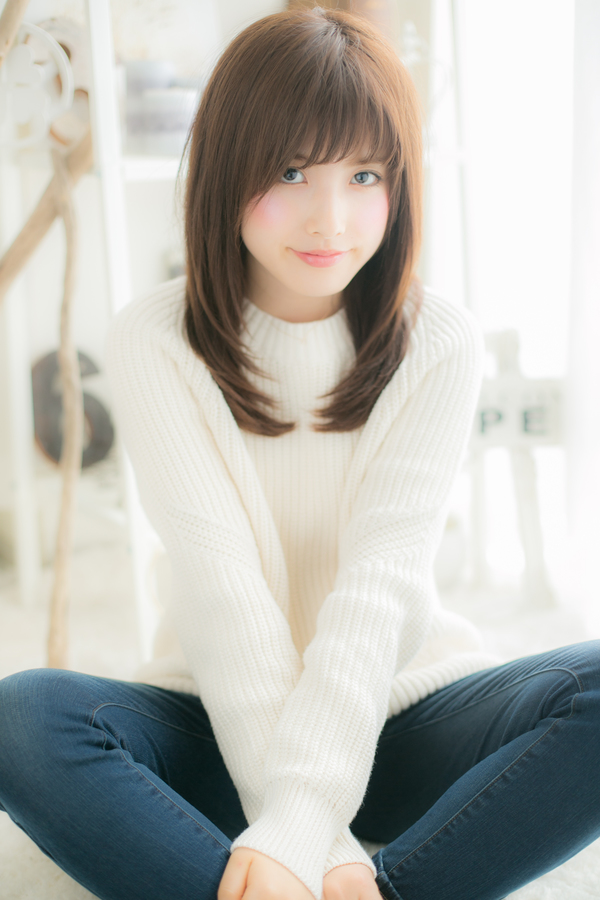 女っぽさUPな人気のワンカールストレートはクールな印象と柔らかさをプラスしてくれます。毛先メインのナチュラルなカールと眉ラインにカットされたバングでラブリーに☆