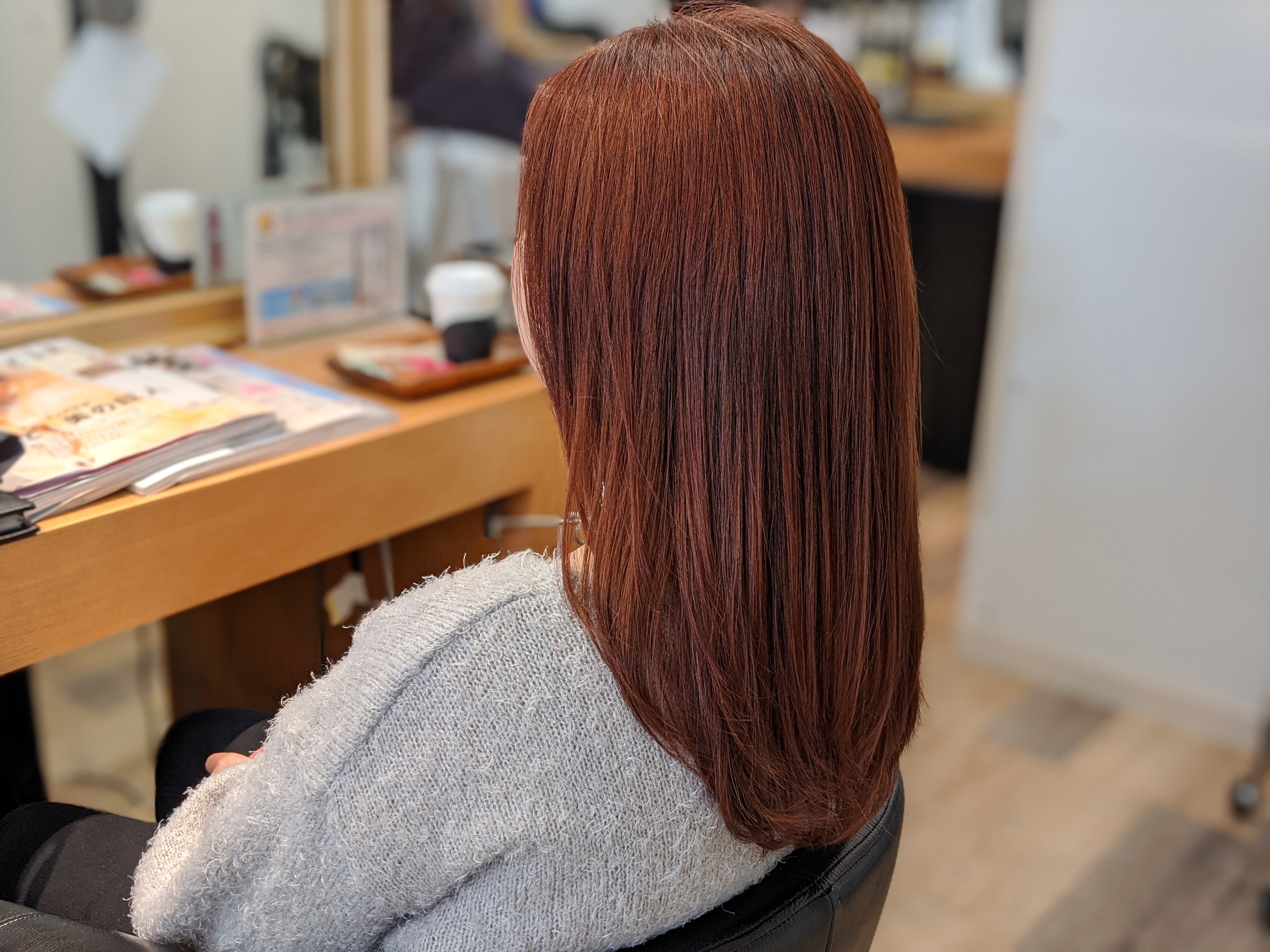 艶髪は淡いピンクカラー×柔らかストレートヘアが相性抜群【上尾】
