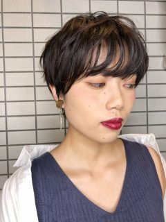 ショート で襟足はキュッと締めて