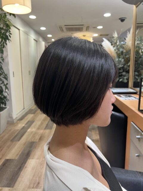 段差を控えめにすることで、全体のシルエットがより丸く、やわらかい印象になります。特に首元からフェイスラインにかけて自然につながるカットラインがポイントです☆