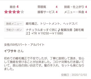 この度は、今までしたことのない縮毛矯正をお任せいただき、ありがとうございます。