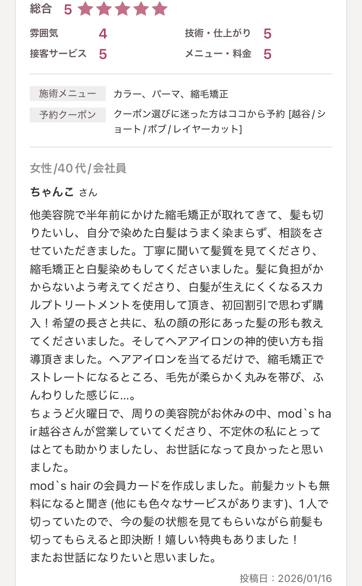 - お客様よりいただきましたお声のご紹介☆【越谷】